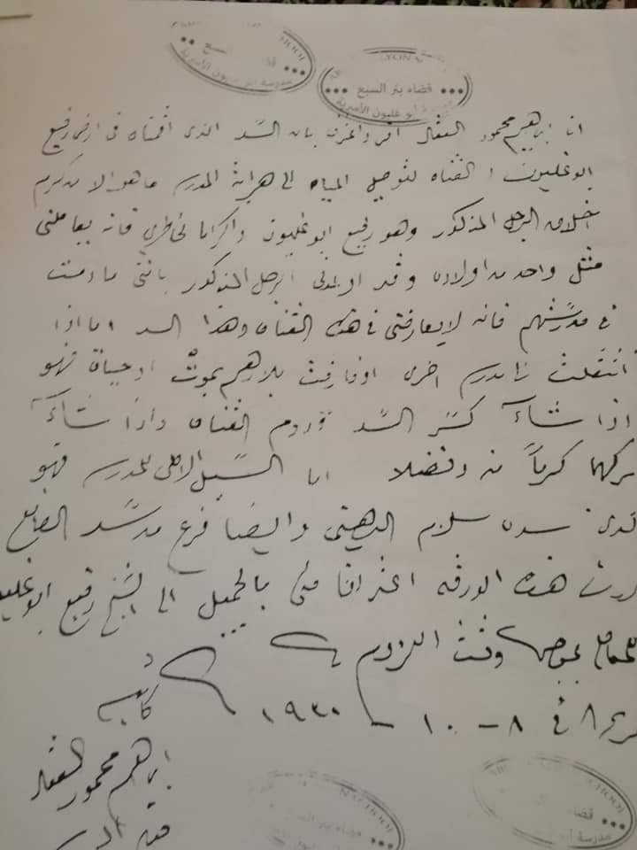 ٢- وصف المدرسة من قبل الحاج عطيه علي رفيع أبو غليون والمرحوم أحمد عطوة العرج أبو غليون .