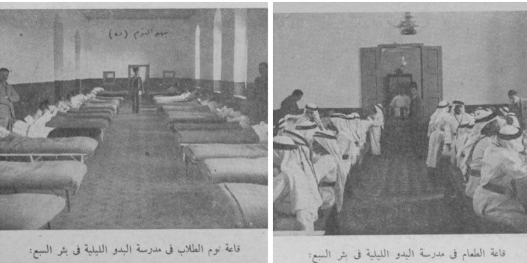 وبناء على ما سبق تم تأسيس جناح داخلي ( ليلي ) لأبناء البدو حيث يؤمن لهم المنامة والطعام والدراسة ، وأذكر أن غرف النوم كانت ملاصقه لبناء المدرسة المكون من غرف صفيه كثيرة لا أذكر عددها، إنما أذكر أن المدرسة فيها 12 معلماً، اضافة الى المدير، أما المطعم المخصص لأبناء البدو، فكان بناء صغير يبعد امتاراً عن المدرسة، وكان يعمل فيه طباخ اسمه (شِنين) حيث يجهز لنا ثلاث وجبات يوميا تقدم فقط لأبناء البدو ، وأذكر أن الدوام يبدأ صباحاً إلى ما بعد الظهر، حيث ينتهي الدوام لجميع الطلبة (حضر وبدو) ثم يذهب بعدها أبناء البدو للمطعم لتناول وجبة الغداء، وكان لكل طالب من أبناء البدو رقم وكان رقمي 73 .